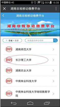 1、打开手机微信,搜索并关注“湖南省非税移动缴费”公众号。