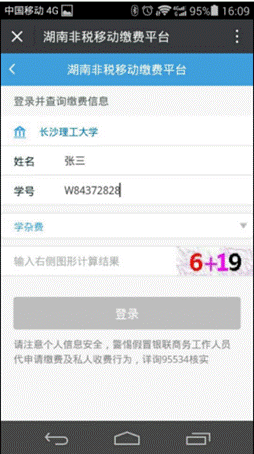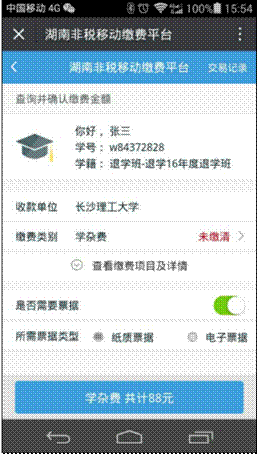 3、进入湖南省非税移动缴费平台-》教育-》选择学校(taptap点点体育)-》进入登录界面,输入学生姓名,学号栏可以输入学号或者身份证号,在此选择缴费类型,缴费类型有“学杂费”、“重修费”、“报名考试费”、“其他费用”。缴费时请选择相应缴费类型。