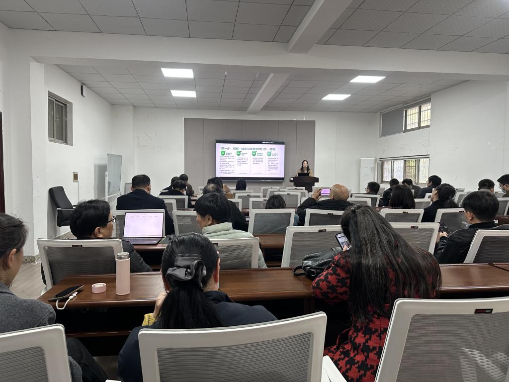 培训过程中,唐菲楠首先对学院一级心理危机预警学生库的整体情况展开分析。她指出,库内学生多为学业、人际压力所困扰,且部分学生存在治疗依从性不足的问题,需要重点跟进。随后,她解读了2025级新生心理普查及回访结果相关数据,并深入剖析了普测与回访结果存在差异的核心原因。此外,唐菲楠还详细讲解了心理危机识别与干预四步流程,明确了一级库入库标准和重点转介情形,着重强调了新生入学、考试季等心理危机高发期的关键关注要点。