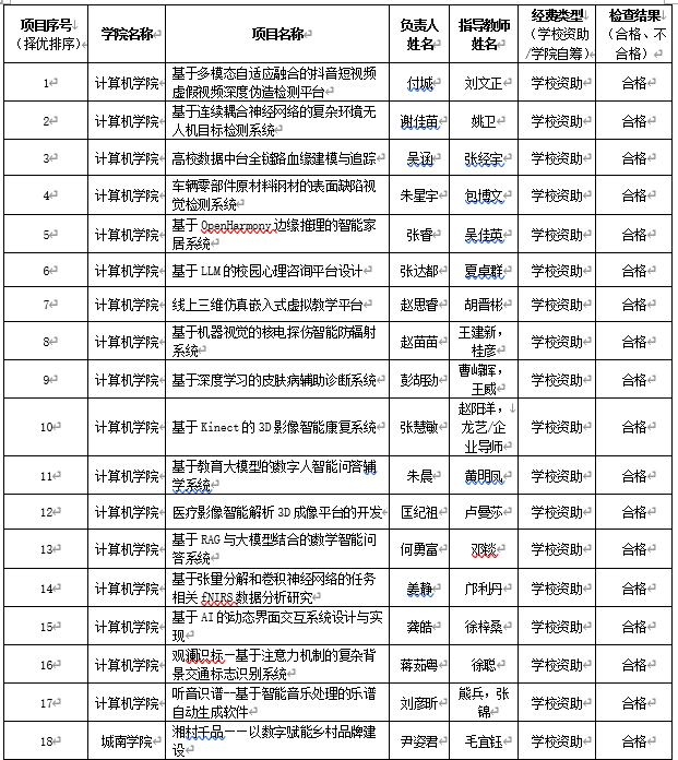 计算机学院关于2025年大学生创新训练计划项目中期检查结果的公示