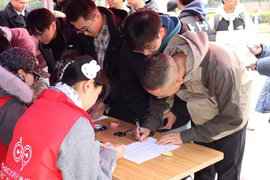 随后,考研学子有序进行信息登记。学院学工办全体辅导员化身“暖心使者”,为每一位到场同学递送定制助考礼包,送上亲手署名的明信片和精心准备的备考物资,将学院的关怀与祝福精准送达学子手中,活动现场氛围温馨且热烈。