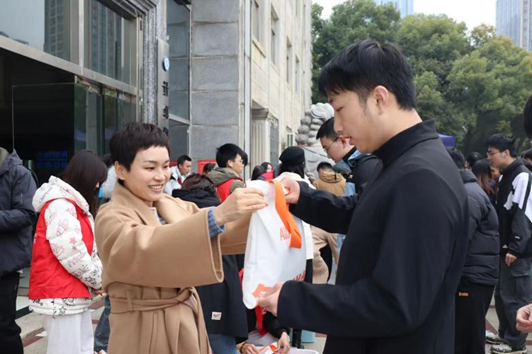 12 月 5 日上午,计算机学院于金盆岭校区电苑楼前组织开展考研助力活动,为 2022 级考研学子发放暖心助考大礼包,切实传递学院对考研学子的关怀,院党委副书记王觊婧和全体辅导员出席,学院2022级学生代表到场参与。