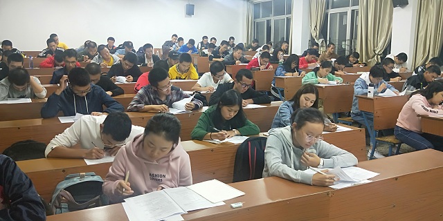 本次模拟考试由2019级年级分会组织准备,各班学习委员协助进行,旨在通过模拟正规的四级考试流程,让新生们提前熟悉英语四级考试。晚19点整,各班同学陆续到齐,学习委员以班级为单位领取模拟试卷。19:20学习委员下发试卷与答题卡,19:30考生正式开始答题。考试过程中,同学们全身心的投入,考场除了落笔的沙沙作响,别无余音。考试结束后,同学们纷纷表示,通过本次模拟考试,切身感受了考场的氛围,了解了考试的流程,更清晰认识到了自己的薄弱环节,为冲刺阶段的复习指明了方向。