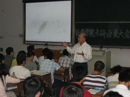 在对毕业生考研动员中,霍书记希望同学们能够继续发挥艰苦奋斗的优良传统,以04级学长为榜样,在今年考研中创造更好的成绩。他还根据自己的经历和经验,分不同专业和角度对考研准备以及报考的注意事项、考试的技巧等方面与学生进行了交流。会议现场气氛热烈,同学们主动与老师们进行交流,并询问了很多实际的问题。