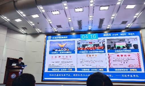 在答辩过程中,汇报人金天宇同学从“底色亮、实践强、善创新、敢担当”四个方面展示了班级建设紧跟高素质复合型人才的培养目标,并展示了班级所获得的各项荣誉以及参与的校内外实践活动,突出了班集体在学术研究和公益活动方面的积极探索与实践成果。