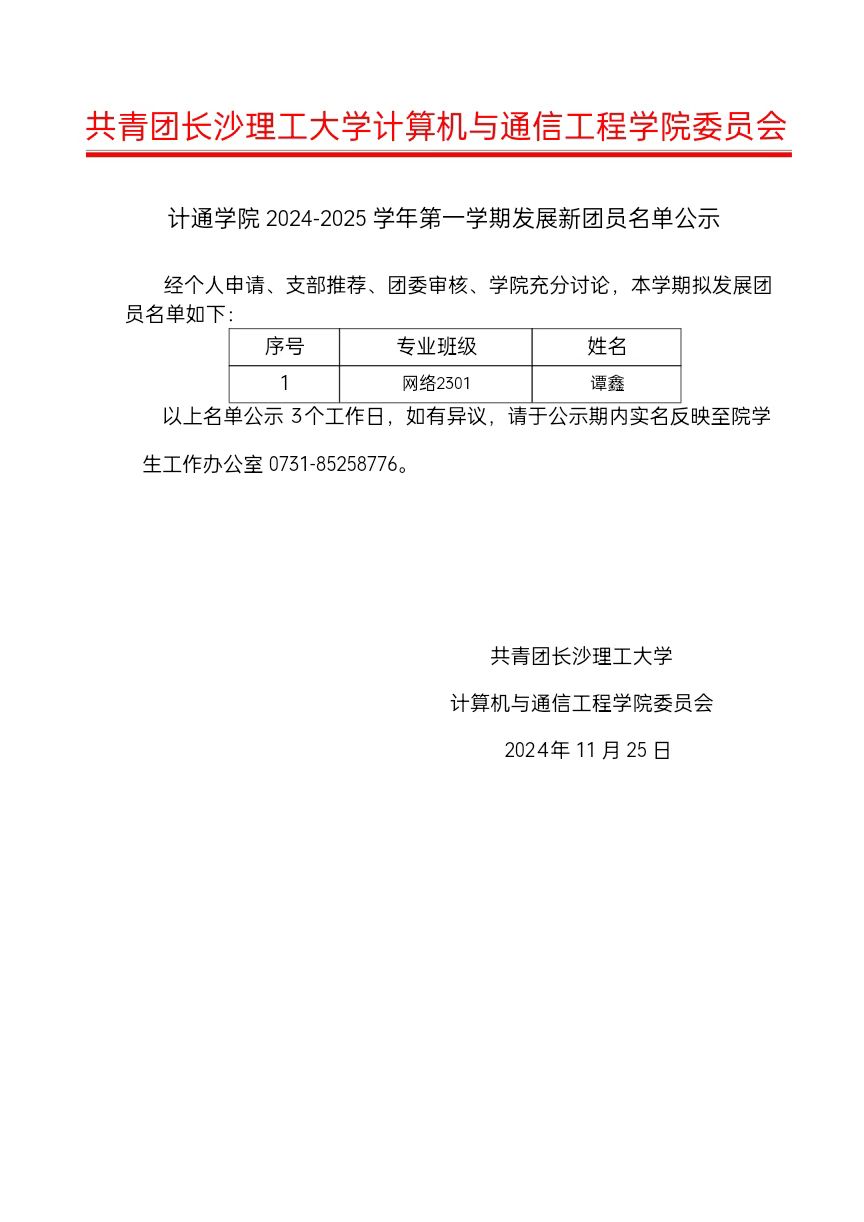 计算机与通信工程学院224-2025学年第一学期发展新团员名单公示