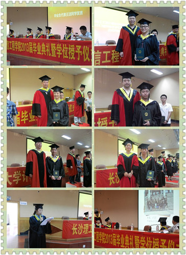 在学位授予环节,院领导为2013届全体毕业生一一颁发学位证并合影留念。整个仪式井然有序,洋溢着欢欣喜庆的气氛。