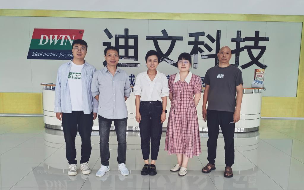 在迪文科技市场部经理莫炎的陪同下,学院一行首先参观了企业展厅。通过讲解与互动演示,考察团深入了解了迪文科技的发展历程、核心产品、技术优势及市场布局,现场体验了其在人机交互、智能终端等领域的创新成果。随后,团队走进生产车间、教学实训区及员工生活区域,实地考察企业生产流程、教学设施及学生实习环境,对企业全产业链整合能力与人才培养机制有了更全面的认识。
