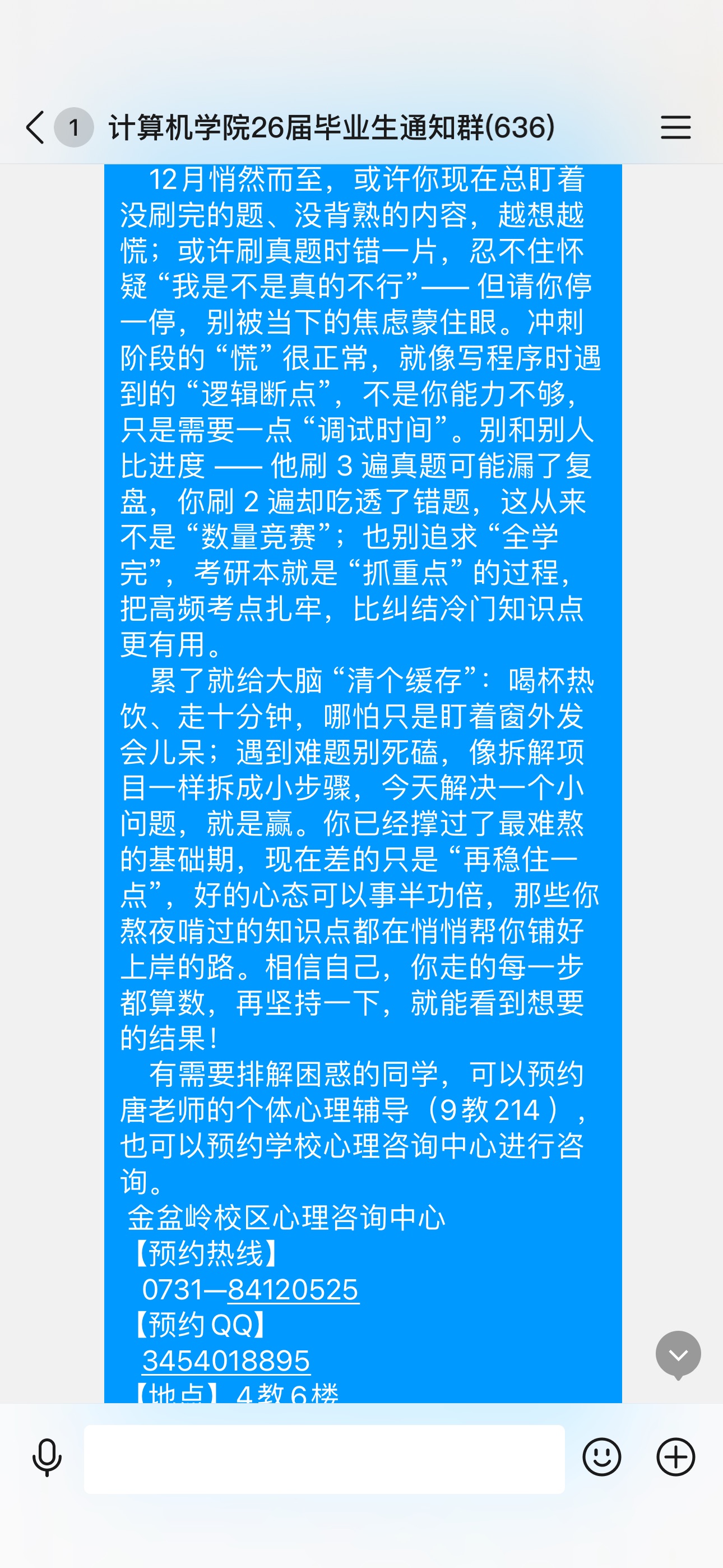 活动期间,学院累计为毕业生发送三百余条同辈鼓励短信,同时派送两百余份暖心礼包,将关怀送到学生身边。“看到陌生同学的鼓励,突然觉得自己的烦恼不是孤军奋战,心里踏实了很多。”22级计科1班朱同学在收到鼓励短信和暖心礼包后,分享了自己的真切感受。