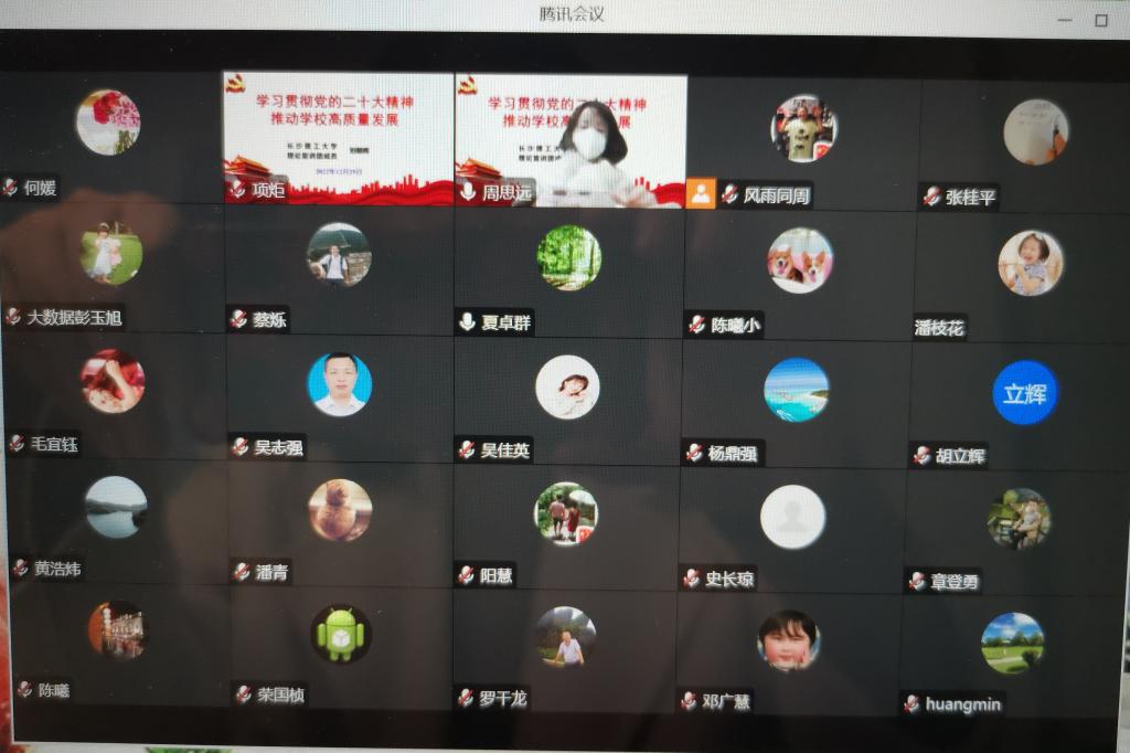 12月20日下午,校党委委员、副校长刘朝晖在线为计通学院做党的二十大精神理论宣讲,宣讲会由院党委书记孔伟红主持,学院全体教职工参加。