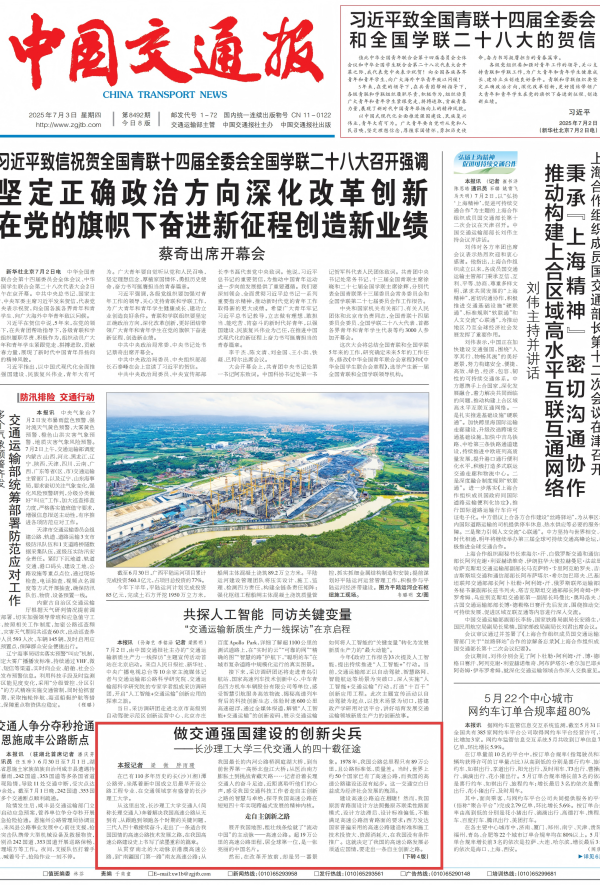 《中国交通报》头版+整版报道taptap点点三代交通人的四十载征途