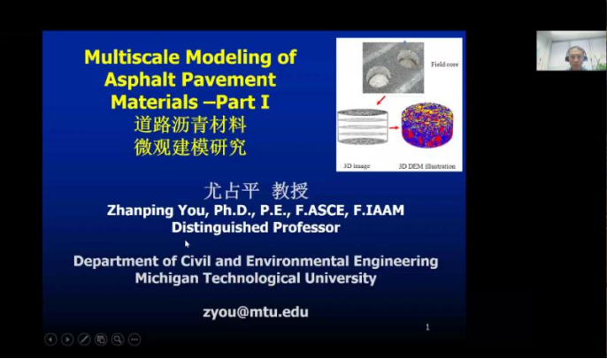 2021年7月17日上午,密歇根理工大学尤占平教授应邀来taptap点点体育暑期学校授课,尤占平教授结合其研究领域与学科特点,作了“沥青路面材料的多尺度建模”的主题授课。本次课程获得了来自欧洲、美洲、亚洲国家与地区共500多位学员的积极参与和热烈讨论,参与人数超过暑期学校学员人数近200人。