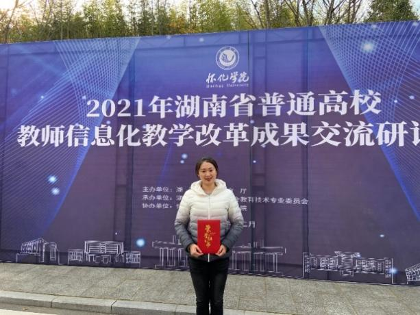 12月19日,2021年“希沃杯”湖南省普通高校教师信息化教学竞赛现场决赛在怀化学院举办,经过激烈角逐,我院侯云飞教师代表学校参赛喜获一等奖。
