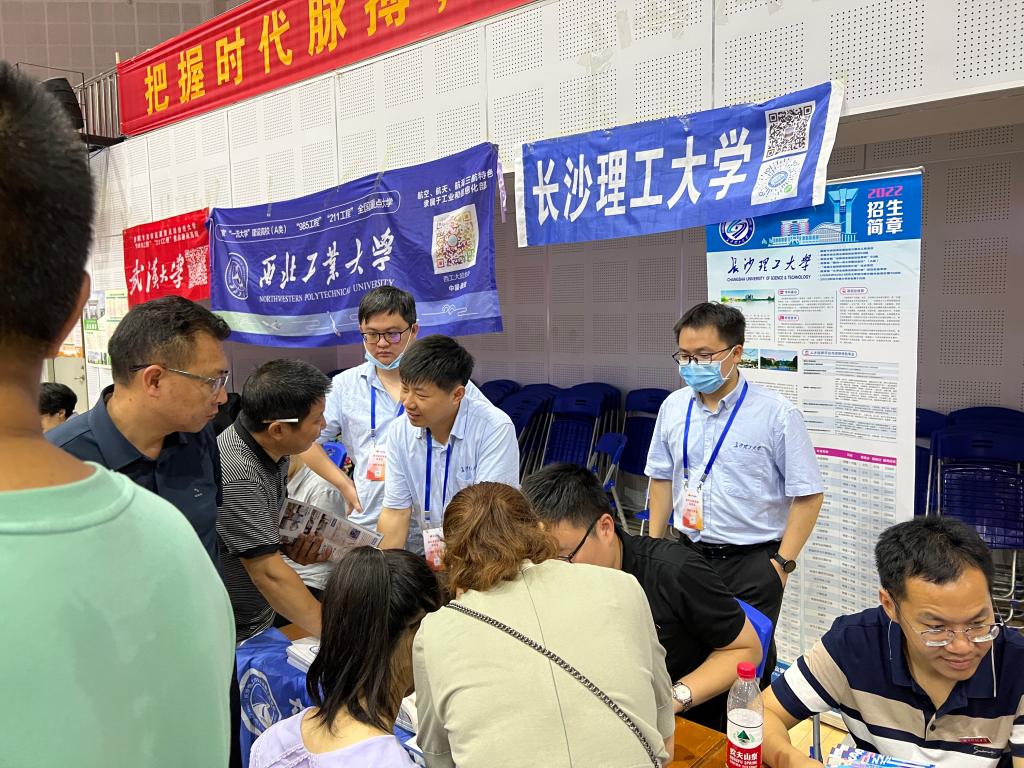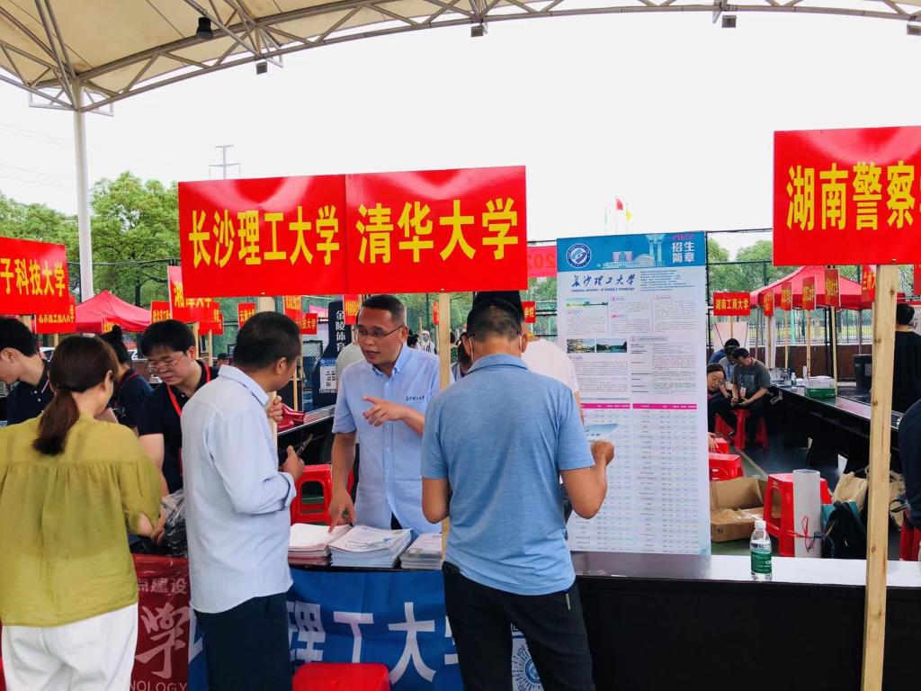 学院成立了以书记、院长为组长的招生宣传工作组,6月份以来,共派出14名教师,组成7支队伍,分赴长沙、株洲、湘潭、衡阳、娄底、岳阳、益阳、常德、张家界等10余个地市的45所优质高中开展招生宣传工作。每到一所高中,前来咨询的考生及家长络绎不绝,招生工作队围绕高考志愿填报、分数位次预测、专业内容学习、就业升学前景、校园文化环境等考生及家长关心较多的问题进行耐心细致解答,根据他们的分数位次、专业意向,精准高效地提出志愿填报的对策和建议,受到家长和考生的一致好评。