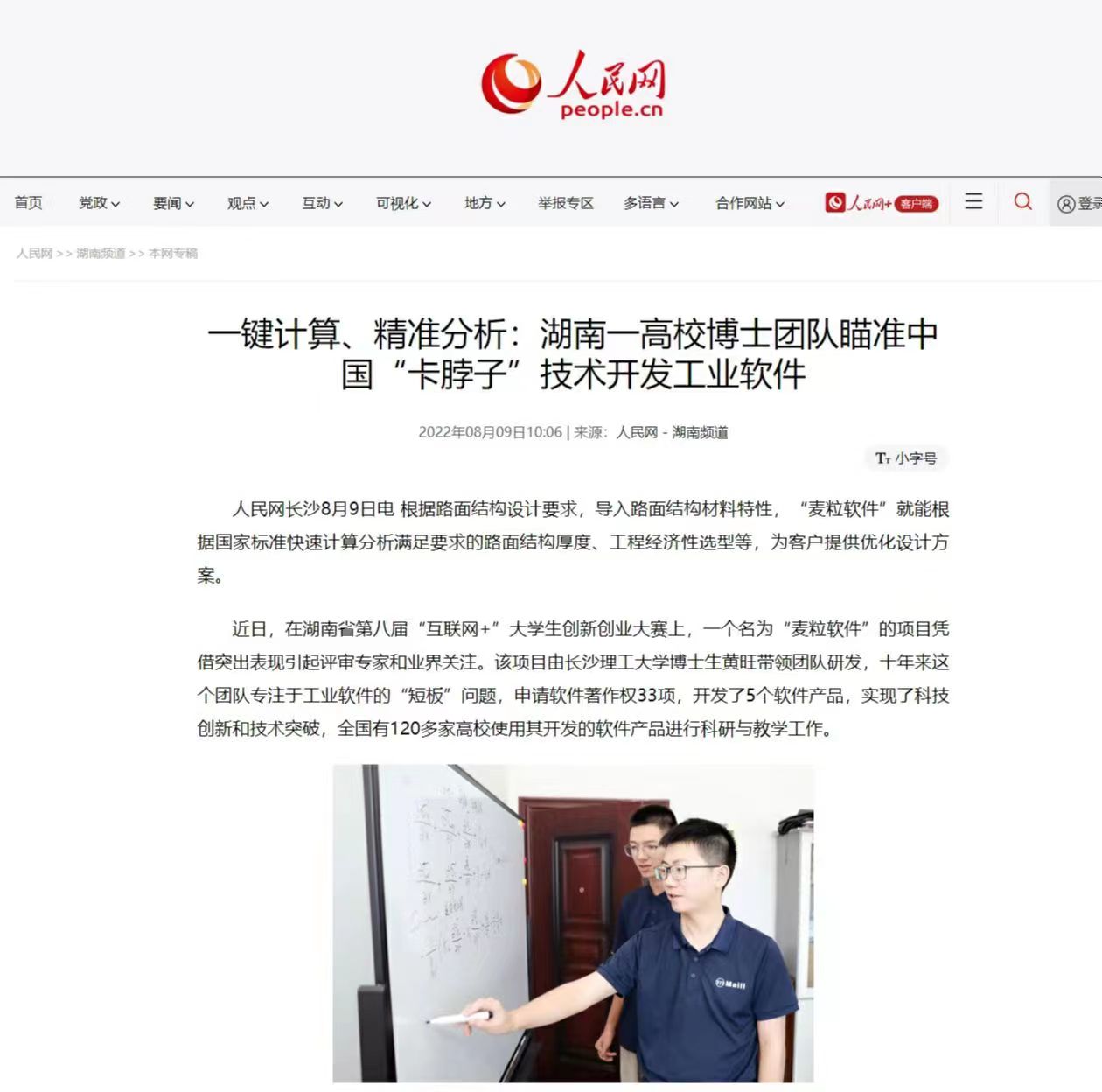 近日,我院博士研究生黄旺的创新创业事迹被人民网、光明日报、湖南日报等多家权威媒体广泛报道,“湖南一高校博士团队瞄准中国‘卡脖子’技术开发工业软件”、“这个团队,十年磨一‘件’”、“长理博士带队研发的工业软件打破国际垄断”等成为时下的教育领域新闻热点主题。报道推出后引发社会热烈反响,澎湃新闻、中国教育新闻网、腾讯网、新浪财经、今日头条、搜狐新闻、网易新闻、湖南在线、新湖南、华声在线、湖南教育新闻网等省内外媒体纷纷转发,全网阅读量超千万,不少网友为taptap点点研究生勇于创新的精神纷纷点赞。