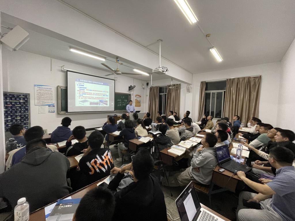 为推进名师进课堂,交通运输工程学院面向本科生推出“行远学堂”系列授课。2022年10月27日晚上七点半,“行远学堂”第01期第一课邀请了国家杰青吕松涛教授开讲,利用国家级虚拟教研室平台采用线上线下相结合方式,为校内外700余名道桥渡专业师生讲授《土木工程概论》课程中道路工程章节,讲授主题为“我国道路工程四十多年的科技发展与展望”。