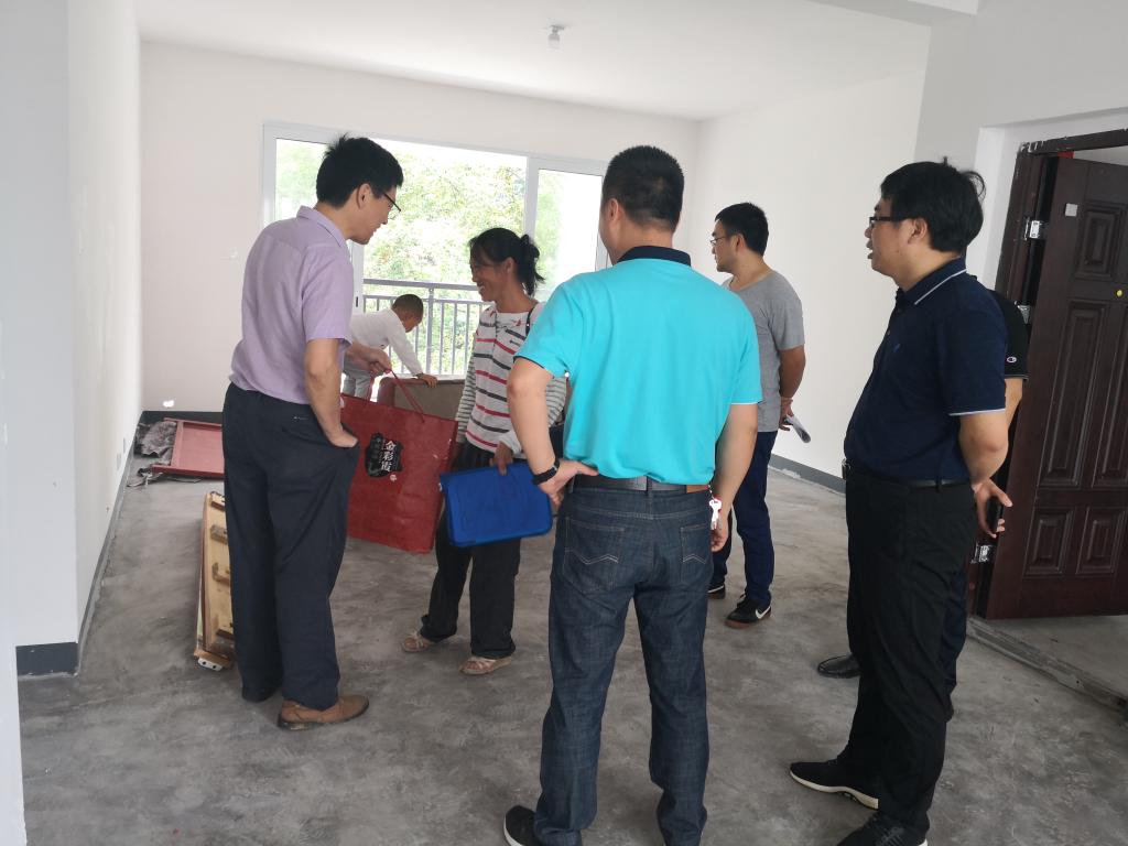 之后,胡庆国一行登门入户走访了结对帮扶贫困户,该贫困户为搬迁安置户,胡庆国来到其新搬迁的安置住房,仔细查看所分到的住房,询问其近况,了解搬迁过程中的实际困难,并鼓励其积极响应政府号召,尽快搬入新居入住。胡庆国、钱国平分别给结对帮扶的困难户送上了慰问金。