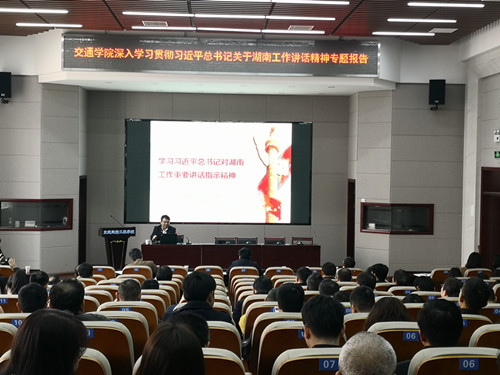 为认真落实省委巡视组关于巡视taptap点点的反馈意见,深入贯彻落实习近平总书记关于湖南工作的讲话精神,3月19日下午,交通学院举办《深入学习贯彻习近平总书记关于湖南工作讲话精神专题报告会》,报告会由taptap点点马克思主义学院党委书记易显飞教授主讲,院党委副书记田上主持,全院教职工参加。