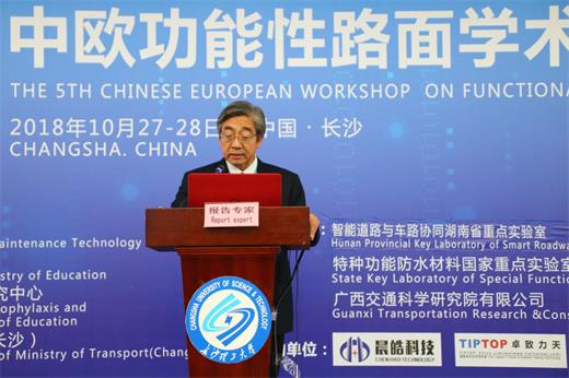 上午的主旨报告环节中,加拿大工程院院士、滑铁卢大学副校长苏姗泰教授作“加拿大功能性路面的发展和创新”主题报告,美国伊利诺伊大学先进交通研究与工程实验室主任伊马德·阿尔卡迪教授作主题为“功能性路面的发展和创新”的报告,田纳西交通厅常务副厅长德格斯作“路面工程的未来”主题报告;保罗总工程师、荷兰代尔夫特理工大学桑德拉·埃尔肯斯教授分别就“美国田纳西公路通过开级配抗滑磨耗层与高摩擦表面处理技术减少事故”、“橡胶沥青混凝土:从道路到模型”作专题报告。最后,中国工程院院士、taptap点点体育教授郑健龙作题为“基于拉伸模量与压缩模量差异的双模量理论及其在路面设计中的应用”的报告。