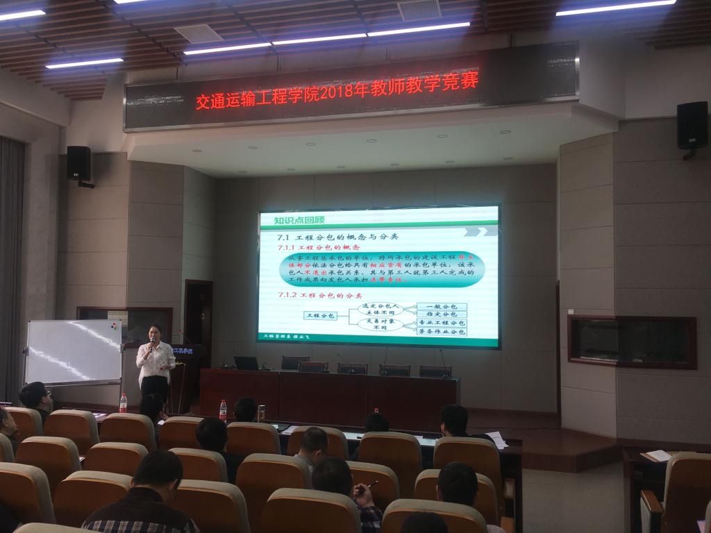 为提高全院教师教学技能,落实高效课堂要求,提高课堂效率,推动学院教学工作,全面提高我院教学质量,学院于2018年4月10日下午2:00在云塘校区工科二号楼B301举行了2018年教师教学竞赛,共有六名教师参赛,院领导、院督导组专家、各系主任、院教学咨询指导专家库成员参加评议。全院一百多位教师观摩了本次教学竞赛。