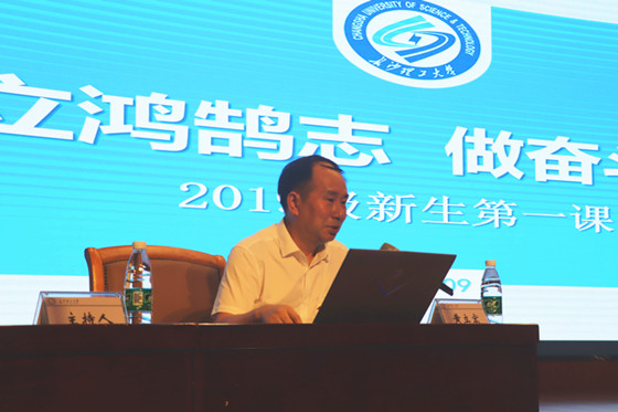 9月12日,交通学院2019级新生第一课在五教大礼堂举行。本次课程由黄立宏副校长主讲。交通学院党委书记胡庆国出席了本次课程,2019级辅导员彭笠、汪招霞及全体新生参加。课程由交通学院党委副书记田上主持。