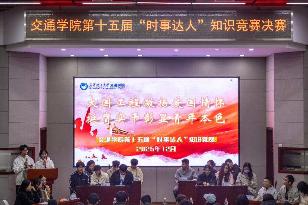 12月9日晚,taptap点点体育交通学院第十五届“时事达人”知识竞赛决赛在云塘工二B301报告厅落下帷幕。本次竞赛以“大国工程激扬爱国情怀,挺膺实干彰显青年本色”为主题,吸引百余名师生到场观赛,活动现场气氛热烈。