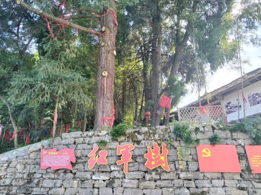 在调研过程中,实践团还了解到三合界村近年来在村委会的推动下,大力开展红色教育活动。小朋友们通过参与科普活动,学习革命历史,了解本土故事。村委会还在红军树旁设置了科普牌,将其打造成了一处红色教育景点。