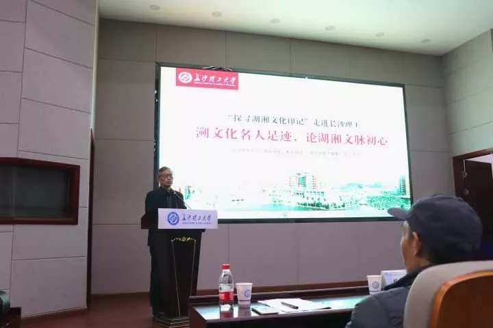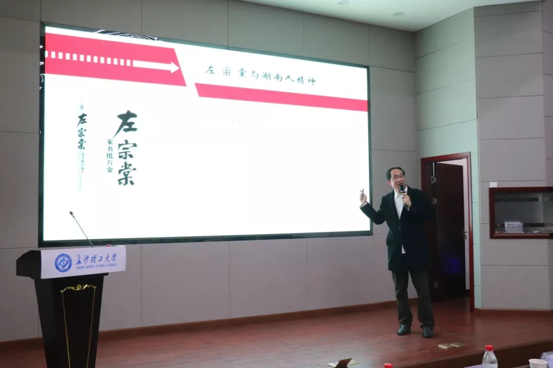 活动由龚旭东主持,郑佳明、成松柳分别致辞,郑佳明谈到:“有关左宗棠的研究多而杂,我比较提倡读经典,读原文,读史料。湖湘文化是从楚湘文化中独立出来的,一直影响到新中国。继承湖湘文化精华,剥离湖湘文化的糟粕,对同学们的学习、生活都会起好的作用。”成松柳谈到:“湖湘文化以屈贾为源头,‘路漫漫其修远兮,吾将上下而求索的求索精神和‘虽九死而未悔’血性,一直延续到左宗棠,到毛泽东。湖湘文化的路是一条不同寻常的路,一条不断延续发展的路。”