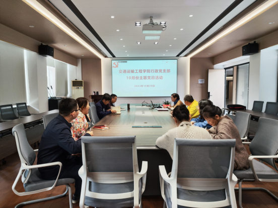 2023年10月20日,行政党支部在工二B413开展10月份主题党日活动,支部全体党员参加,支部书记黄小花主持。