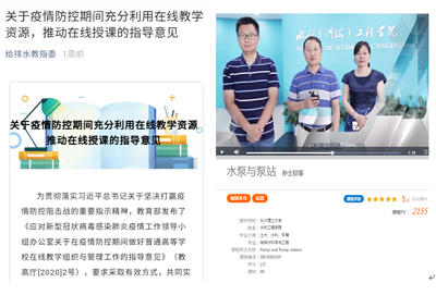 给排水系组织老师们积极对接给排水教指委,依据给排水教指委指导意见,利用超星学习通、腾讯课堂、中国大学MOOC、QQ群视频、钉钉会议等教育部推荐的慕课平台,与其他给排水高校建立在线课程互助系统,共享“金课”师者。给排水系根据taptap点点学生及课程体系特征,积极研讨、认真甄选,选择超星学习通及哈工大等985高校优秀课程资源,作为共享“金课”师者平台与师者课程。
