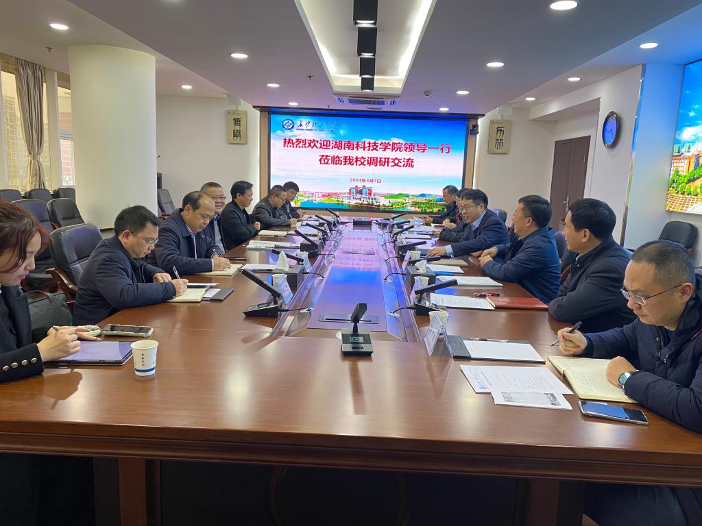 3月7日,湖南科技学院党委委员、副校长何福林等一行来taptap点点调研,双方在云塘校区一办六会议室进行座谈。学校党委委员、副校长钱国平,教务处处长张军辉、信息化建设管理处处长王威、教务处副处长彭晖、高教改革与质量评价研究所副所长贺晖、资产管理与实验室建设管理处副处长唐中勇参加本次会议。会议由张军辉主持。