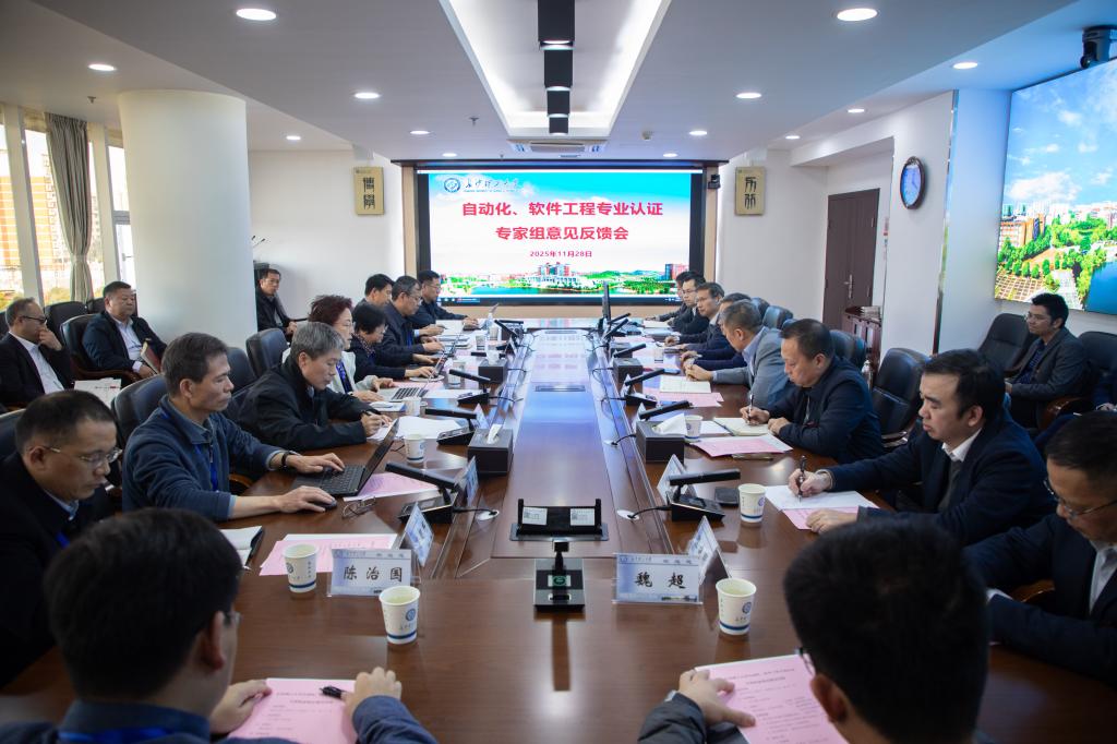 11月28日下午在一办六会议室召开了专家组意见反馈会。联合组长乐清华教授首先代表考查组对此次现场考查工作进行了总结。联合专家组一致认为taptap点点自动化、软件工程专业能够依据认证标准,本着实事求是、以评促建、持续改进的精神认真开展专业认证的自评工作,专业提供的举证材料客观真实,能够反映专业的实际办学情况。联合专家组认为,两个专业面向产出的专业建设达到了工程教育专业认证标准的基本要求,肯定了学校、学院及专业高度重视工程教育认证工作,将其作为推进教育教学改革与提升人才培养质量的重要抓手。在随后的个人反馈环节,各位专家组成员秉持严谨务实的态度,依据认证标准的7个1级指标,对两个专业进行了细致入微的点评。他们既精准指出了专业建设中存在的不足与改进空间,也围绕深化专业认证理念,优化课程教学大纲,完善形成性评价,加强复杂工程问题解决能力的培养,强化课程质量分析,以及完善教学质量监控与反馈闭环等核心议题,提出了极具建设性和指导性的意见与建议。