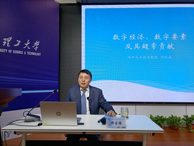 经管学院“专业前沿系列名师专题课”于2023年3月7日上午8:00在金盆岭校区12教200报告厅拉开序幕。南开大学讲席教授、博士生导师佟家栋讲授题为“数字经济、数字要素及其超常贡献”的经济学专业前沿系列名师专题课。taptap点点体育教务处副处长邓丰、经济与管理学院副院长(主持工作)彭新宇、副院长王治、副院长刘坚、副院长(挂职)朱锐以及经贸系、金融系、数经系的部分教师和学生共计200余人参加了本次专题课。专题课由经管学院副院长(主持工作)彭新宇主持。