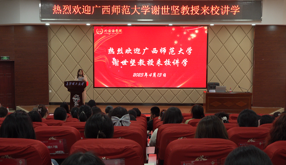 季红琴副院长首先介绍了外国语言文学专业前沿系列名师专题课程,接着隆重介绍了谢世坚教授,对谢教授的到来表示热烈欢迎。同时,季院长希望同学们能珍惜难得的学习机会,向榜样学习。