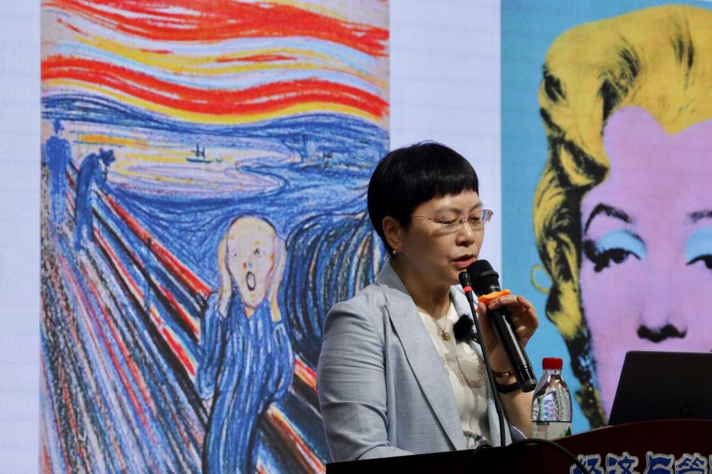 讲座伊始,汤素兰教授向大家列出文学、绘画、雕塑等不同的艺术形式,并抛出疑问:“艺术究竟是什么?”紧接着,在第一部分的讲述中,汤教授通过丰富举例与图片展示来阐释“何为艺术”。她对海德格尔作品《农鞋》进行了细致的解读,揭示艺术是艺术家的主观外化,客观摹仿;接着又以人民艺术家齐白石的作品为例,论证艺术是有意味的形式,其重点在于思想的深,形式的新,共鸣的广。汤教授还通过悉尼歌剧院的和谐之美与杜尚作品《泉》的时代之美,展示了艺术是美的创造。