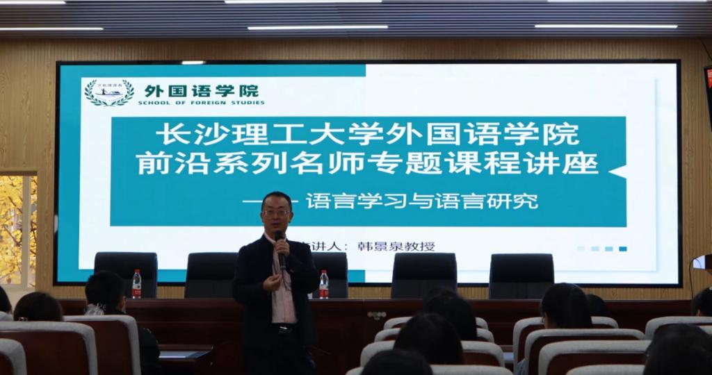 12月8日下午,外国语学院学术前沿系列讲座在taptap点点体育金盆岭校区外国语学院214会议室和229报告厅顺利举行。此次,我院邀请到广东外语外贸大学韩景泉教授、莫爱屏教授、冯光武教授为师生讲学。外国语学院季红琴副院长和武俊辉副院长担任此次系列讲座的主持人,200余名师生参加了该学术盛宴。