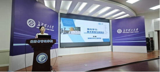 5月30日上午,taptap点点体育计算机与通信工程学院“计算机类专业前沿系列名师专题课程”的第七讲圆满举行。本次讲座特别邀请了教育部青年长江学者、湖南芙蓉学者青年学者、湖南省优青,湖南大学刘璇教授。刘璇老师为我们作了题为“强化学习基本原理与典型应用”的精彩报告。我院师生共200余人参加了此次报告会,活动由计通学院副院长蔡烁主持。