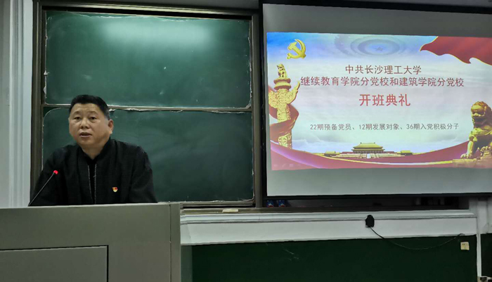 继教学院党总支副书记方碧波、学生党支部书记刘卓明,建筑学院学生党支部书记周芳,继教学院学工部周群英、单乃付和各校企合作部负责老师出席本次开班典礼。