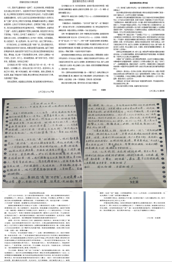 直播课上我院学生认真聆听,仔细学习,深受鼓舞。这是一次特殊的思政课堂,教授们的精彩讲述,充分激发了继教学子的爱国热情和作为青年一代的责任担当。土木1704班的曹彤博感悟道,“经过这堂思政课的教导,我明白了少年强则国强,少年独立则国独立的道理,明白了爱国的意义。这不仅仅是一堂课,更是对我们人生的引领”。1901班的陈建衡感慨道,“作为社会主义的接班人,要把这次的疫情当作学习的机会,学习前辈们处变不惊,舍己为人的精神。我们要利用好这个机会,静下心来想一想自己的人生规划,把我们的祖国建设得更加强大,是我们每个人的使命。”还有很多同学对中央财经大学冯秀军教授提到的此次战疫里90后、00后的“非典型”青春;卖萌不影响冲锋,即使恐惧仍勇敢,“崩溃”之后继续战斗等等印象深刻、深有感触。纷纷表示自己也要向这些哥哥姐姐们学习,关键时刻敢挑重担,用行动谱写新时代的最美青春。(文、图/刘卓明  审/方碧波)