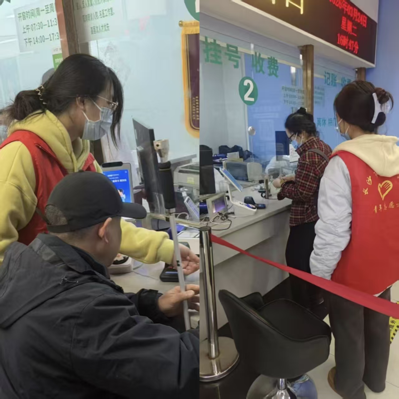 活动期间,身着统一红色马甲的志愿者们成为了医院门诊大厅内一道温暖而亮丽的风景线。他们经过前期培训,迅速投入到各自岗位中。在引导台前,志愿者们耐心细致地为前来咨询的患者指引科室方向、解答就医流程;在自助挂号机、报告打印机旁,他们主动上前,手把手帮助操作不便的老人、怀抱婴儿的家长以及行动困难的患者完成挂号、缴费、取报告等步骤,有效缓解了医院门诊高峰期的秩序压力,用真诚的微笑和专业的服务缩短了患者的候诊时间,传递了来自青年一代的关怀与温情。
