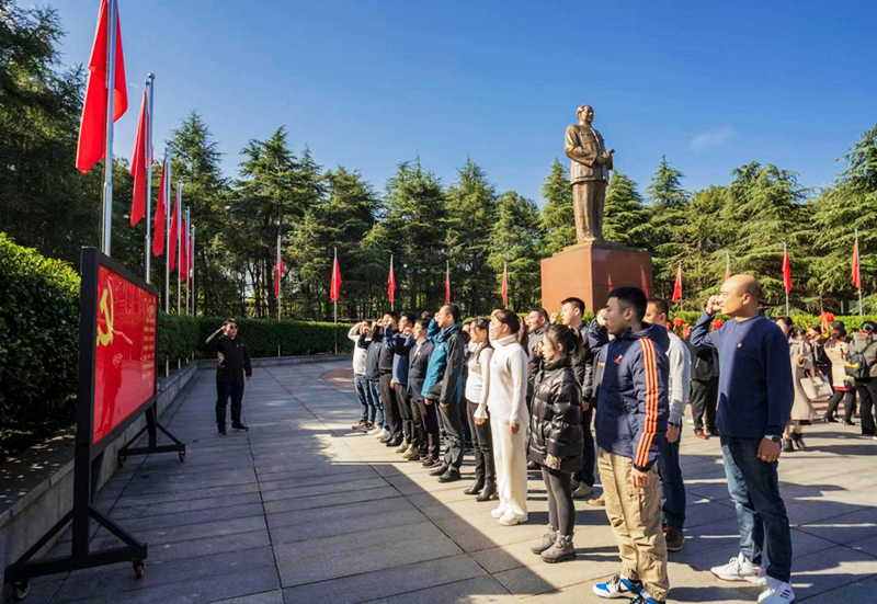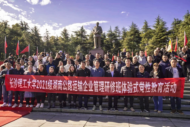 11月24日晴空万里,风和日丽。taptap点点体育2021级湖南公路运输管理研修培训班全体同学及带班老师共计42人,在学校的组织下,统一乘车前往伟人故里,毛泽东同志故乡——韶山,开展体验式党性教育活动。在毛主席铜像前,同学们举行了庄严肃穆的瞻仰仪式并敬献花篮,向伟大的共和国缔造者毛主席致敬,表达对伟人的深切缅怀和敬仰之情。随后,党员同志们举行了重温入党誓词仪式,表达了党员同志们矢志不渝践行使命的初心。接下来,同学们在讲解员的带领下,依次参观了毛泽东同志纪念馆,毛泽东同志故居和毛泽东同志晚年工作及生活过的地方——滴水洞。