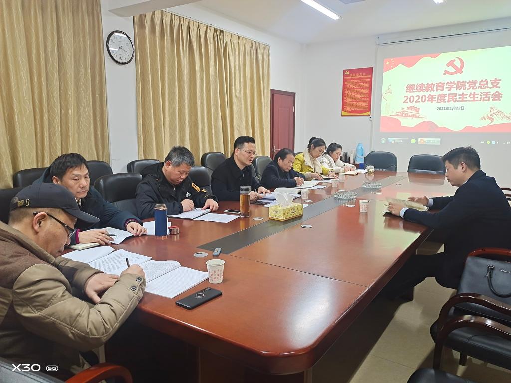 1月22日下午,继教学院党总支班子召开2020年度民主生活会。校督导组组长、纪检监察处长方文彬到会指导,院总支书记何纯芳主持,总支班子成员参加。