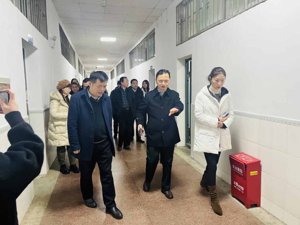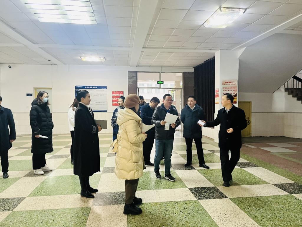 221日上午8点,继续教育学院党总支书记何纯芳、副书记兼副院长谢士成、副院长向英、办公室主任易国萍、本部助学中心、学工部、后勤保卫部等部门领导对14号教学楼各教学部开展了新学期开学教学检查。