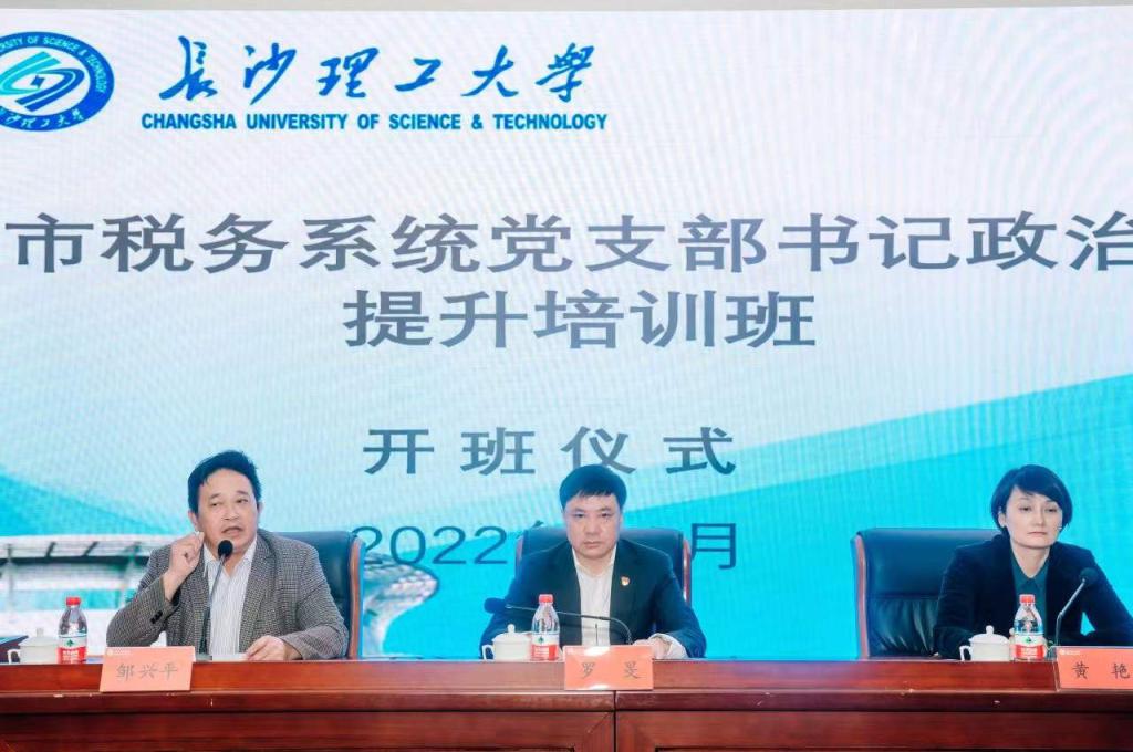 2022年10月31日,由国家税务总局长沙市税务局委托、taptap点点承办的 “长沙市税务系统党支部书记政治能力提升培训班”在taptap点点体育云塘校区国际学术交流中心正式开班,国家税务总局长沙市税务局局长罗旻、副局长(党委委员)黄艳、taptap点点体育继续教育学院院长邹兴平教授参加了本次开班仪式。