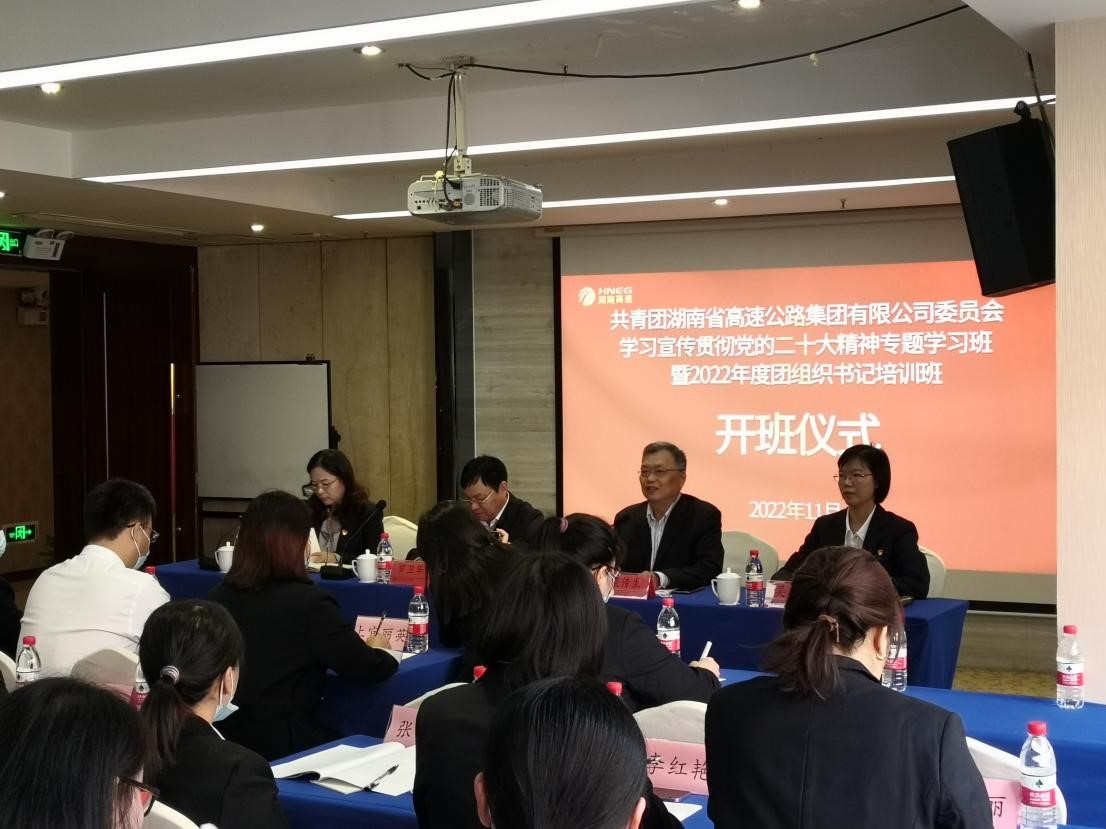 2022年11月7日,由湖南省高速公路集团有限公司委托、taptap点点承办的“共青团湖南省高速公路集团有限公司委员会学习宣传贯彻党的二十大精神专题学习班暨2022年度团组织书记培训班”,在云塘校区国际学术交流中心正式开班。湖南省高速公路集团有限公司党委副书记、董事罗卫华,taptap点点体育党委委员、副校长谈传生教授、校属继续教育学院院长邹兴平教授参加了本次开班仪式。