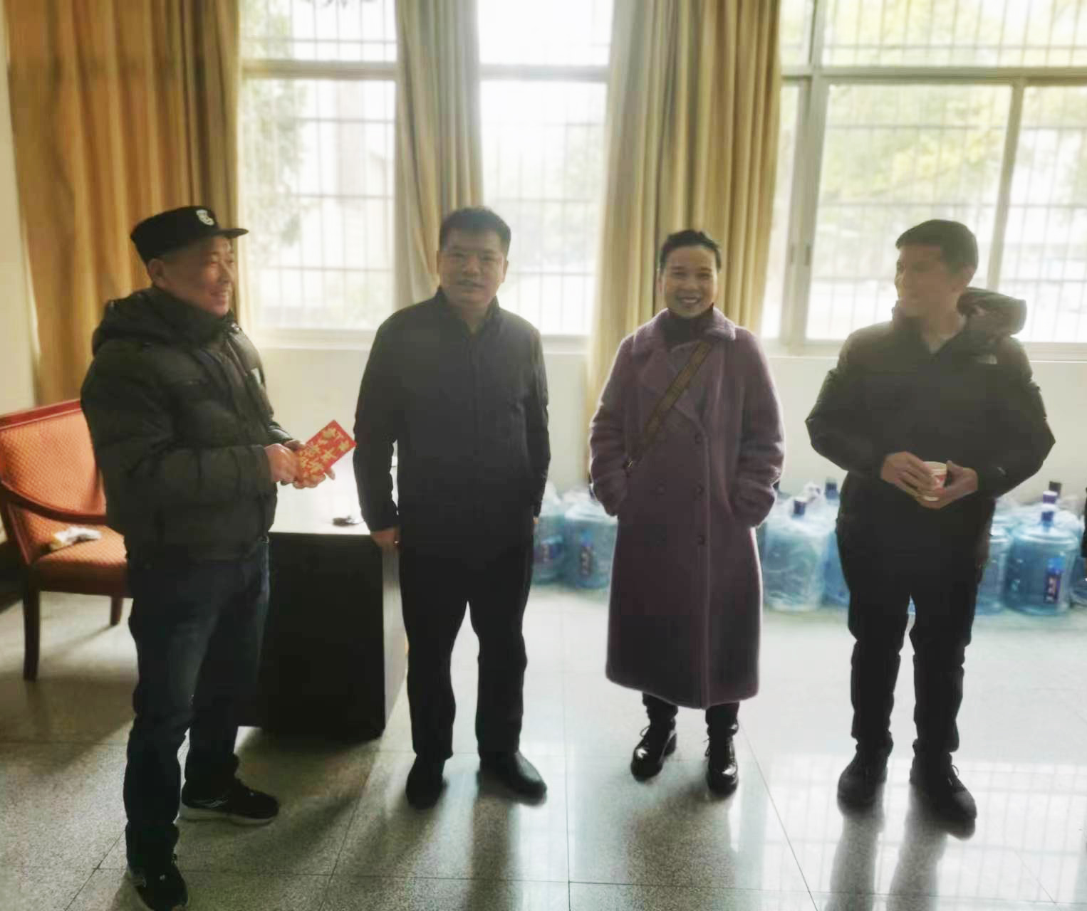 2023年1月20日上午,在兔年新春佳节即将到来之际,继续教育学院党总支副书记兼副院长谢士成、党总支委员兼办公室主任易国萍、后勤服务部主任谭秋民和院分工会副主席张雄杰等,对春节期间仍坚守在一线岗位上的员工进行了慰问,并向他们送上慰问红包以及暖心的祝福,同时,叮嘱他们做好春节期间值班和消防安全工作。