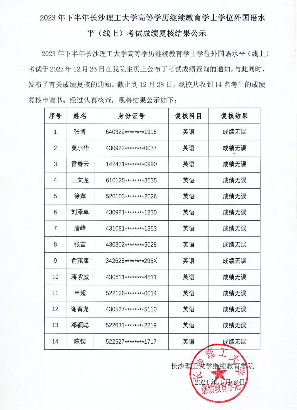 2023年下半年学士学位外国语水平(线上)考试成绩复核结果公示