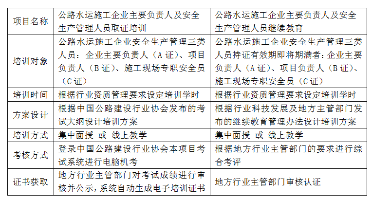 公路水运施工企业主要负责人及安全生产管理人员取证培训、继续教育