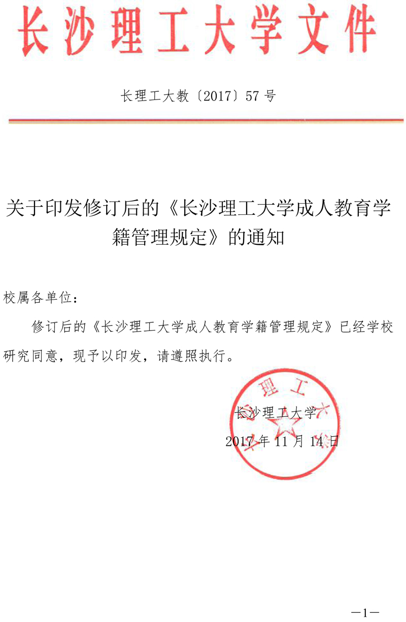 《taptap点点体育成人教育学籍管理规定》(长理工大教【2017】57号)