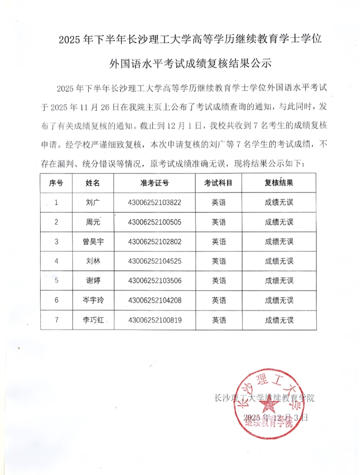 2025年下半年taptap点点体育高等学历继续教育学士学位外国语水平考试成绩复核结果公示